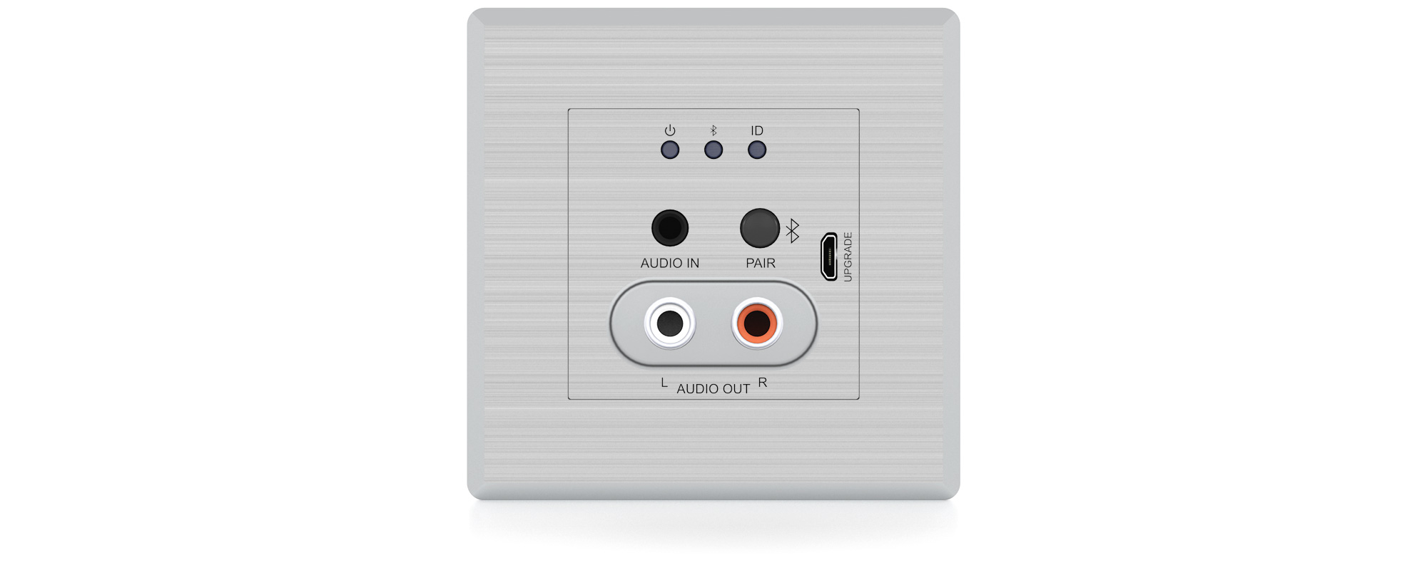 • Dante® network wall plate interface for Bluetooth and analogue L/R audio inputs, and L/R audio outputs
