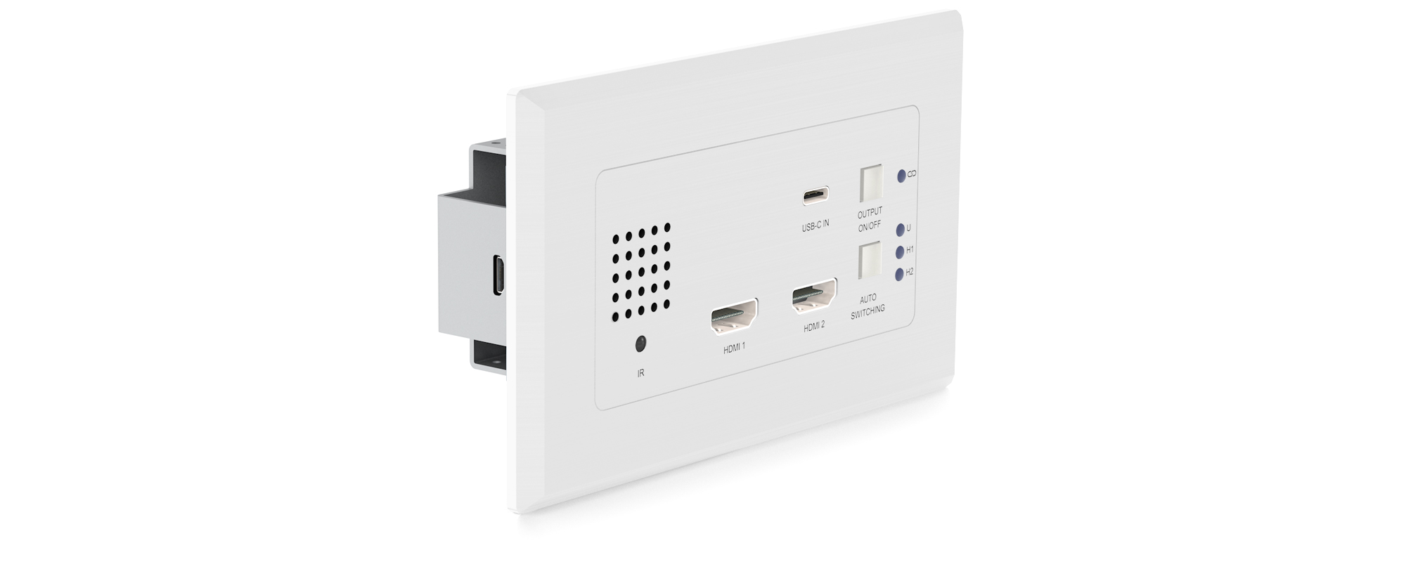 Our HEX31WPW-TX HDMI/USB-C wall plate HDBaseT™ Transmitter is a multi-format 4K input switcher solution delivering HDMI and USB-C inputs up to 70m at 1080p (40m 4K 60Hz 4:2:0). The HEX31WPW-TX features both manual or automated source selection and includes display on / off control via CEC, RS-232 and IR (via compatible HDBaseT™ receivers / Matrix). The HEX31WPW-TX has been designed to work with all Blustream HDBaseT™ receiver and matrix solutions, be installed in both UK and European back boxes and can be powered locally or from compatible Blustream HDBaseT™ products.