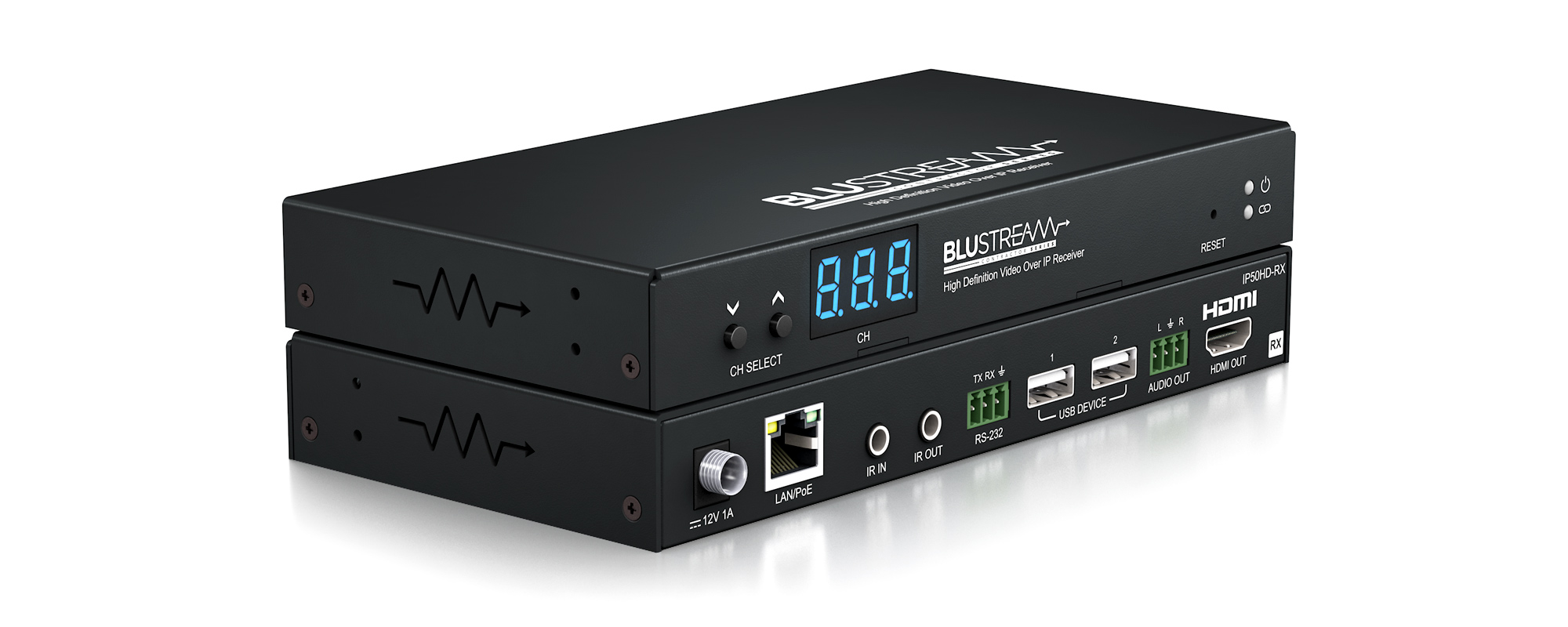 The IP50HD-RX is an industry leading 1080p HDMI video scaling receiver that, using H.265 compression technology, delivers HDMI, Bi-directional IR, RS-232 & USB/KVM up to lengths of 100m over standard network architecture.