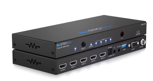 Analogue and optical digital (S/PDIF) audio breakout allows for audio integration. The SW41AB-8K is HDCP2.3 compliant and has advanced EDID management of source devices connected.