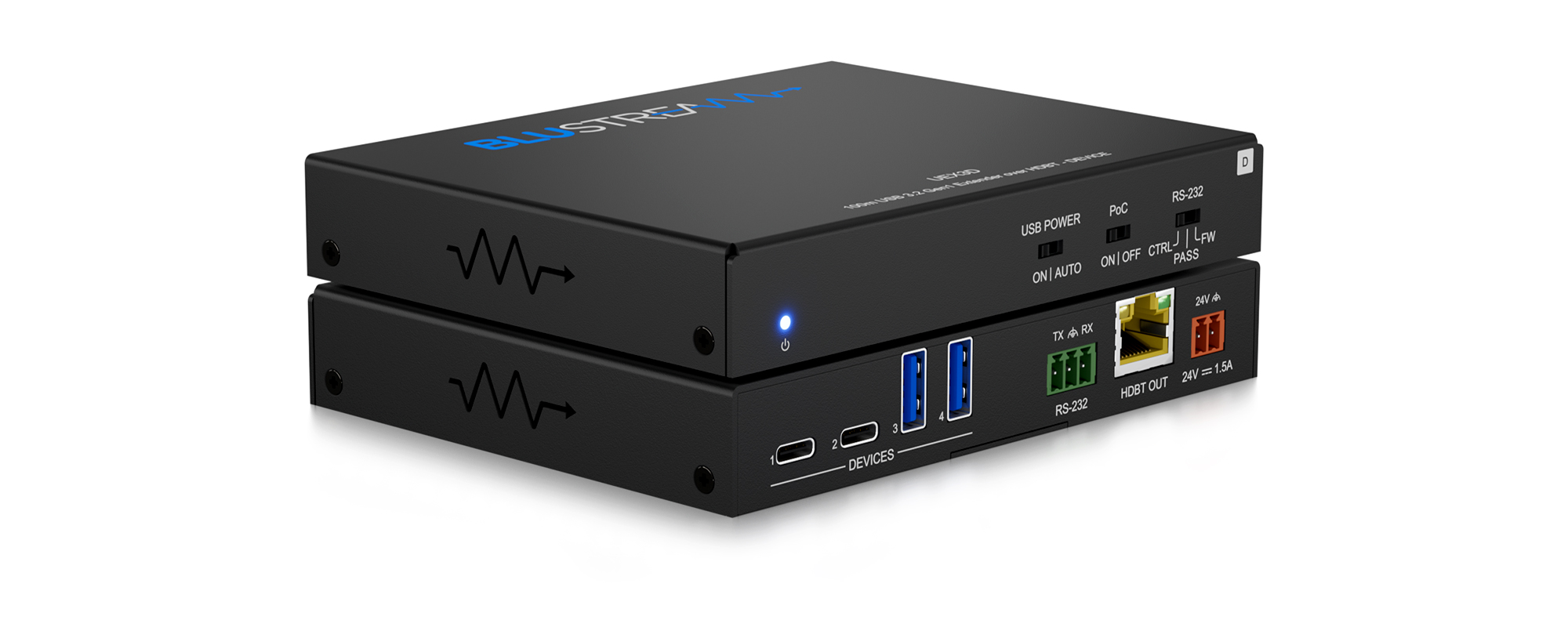 The UEX3D is a USB Device solution utilises HDBaseT™ technology to allow for remote connectivity to a USB 3.2 Gen1 Host at distances of up to 100m over a single CAT6A cable. The UEX3D allows for 4 x USB Devices (2 x USB type A, and 2 x USB-C) to be connected to a compatible Blustream USB HDBaseT Receiver (Host) extender with support for a combined transmission data bandwidth of up to 5Gbps. The UEX3D is backwards compatible with USB 2.0 and 1.1 devices, and utilises bi-directional Power over Cable (PoC) to power from either end of the HDBaseT link. The UEX3D is ideal for applications requiring extension of USB 3.2 Gen1 conferencing cameras, video capture devices, flash/hard drives, KVM devices, audio devices and other USB 3.2 Gen1 devices.